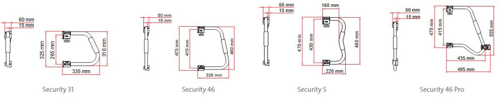 Security S: Ideal if you'd like the strength and reach of a larger handle with minimum projection whilst folded. Best if you see yourself parking next to walls or other touring campers a lot. Less bulk, but still incredibly sturdy.