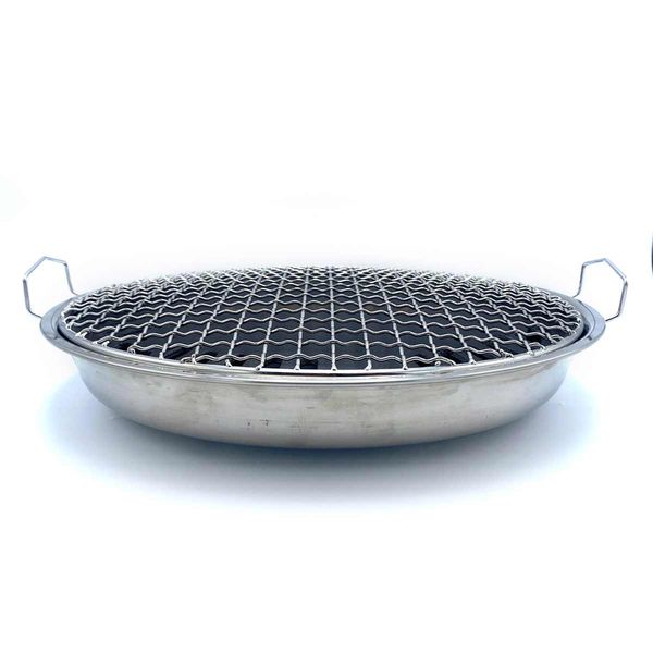 - Metal water bath tray below the grates acts as a heat diffuser and prevent flare-ups by catching grease