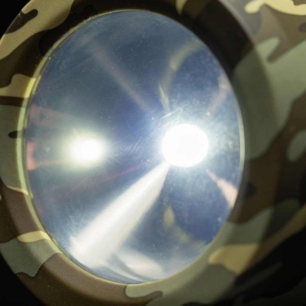 This product is supplied in a sleek black, as well as a camouflage green and a camouflage black.